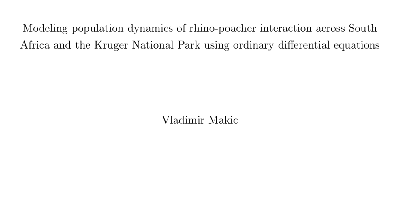 Vladimir’s thesis was on modelling population dynamics between rhinos and poachers in South Africa as a whole and Kruger National Park in particular.